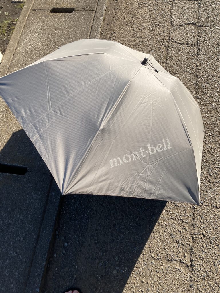 最近手に入れたモンベルの日傘、暑い中日傘をさすと